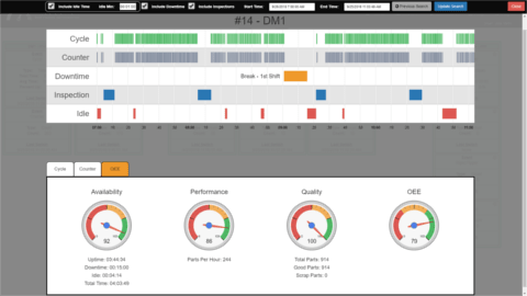 Easily monitor machines and jobs in real-time with the Dashboard system. Get up-to-date information about all your machines and jobs being run. We use a color coded system so you can easily tell which machines are running or in down-time, whether your operators are meeting their target efficiency rates, and whether they are on-time or overdue for an inspection. You can even customize your dashboard so the layout mimics your shop floor.